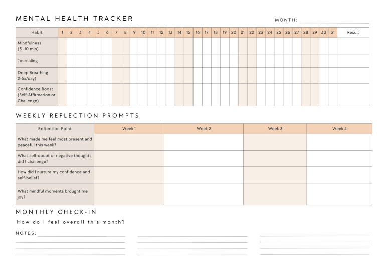 Improving mental health doesn’t require drastic changes. Small, intentional habits when practiced consistently can lead to profound inner growth. With this simple mental health tracker, you’ll not only prioritize mindfulness but also build confidence from the inside out.